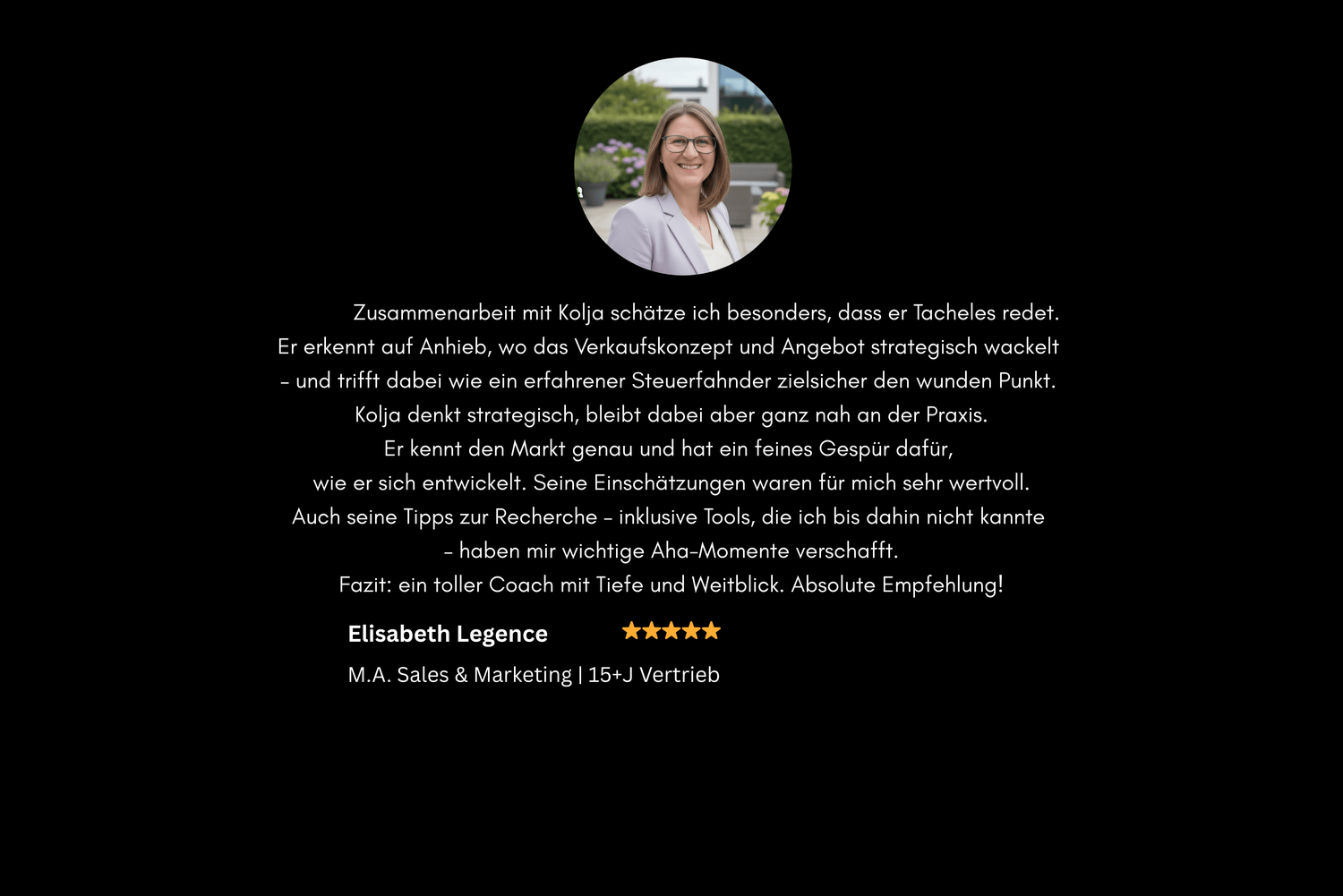 "Kolja hat die komplette Erstellung meiner Landingpage, Homepage und des E-Mail-Marketings übernommen. Ich habe jetzt eine wirkungsvolle Marketing-Strategie, die bereits Erfolge zeigt."